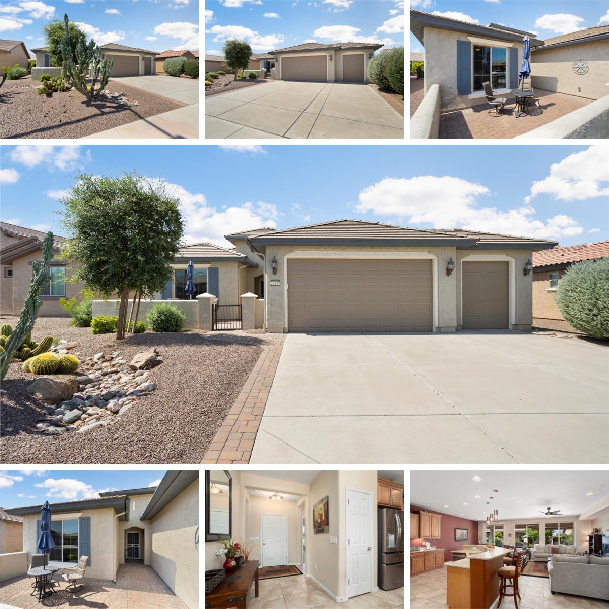 Welcome to Sun City Festival's most sought-after floor plan—the Gala! This 1,612 sq ft gem is nestled in a friendly neighborhood within this 55+ desert oasis, just a scenic drive west of Surprise. Lightly lived in as a snowbird retreat, it's fully furnished and truly turn-key—just bring yourself! The split-bedroom layout offers privacy, while the den provides flexible space for work or guests. Enjoy open-concept living, a golf cart garage, a covered patio with a power awning, and includes a newer refrigerator and dishwasher. Comfort, style, and resort living await!